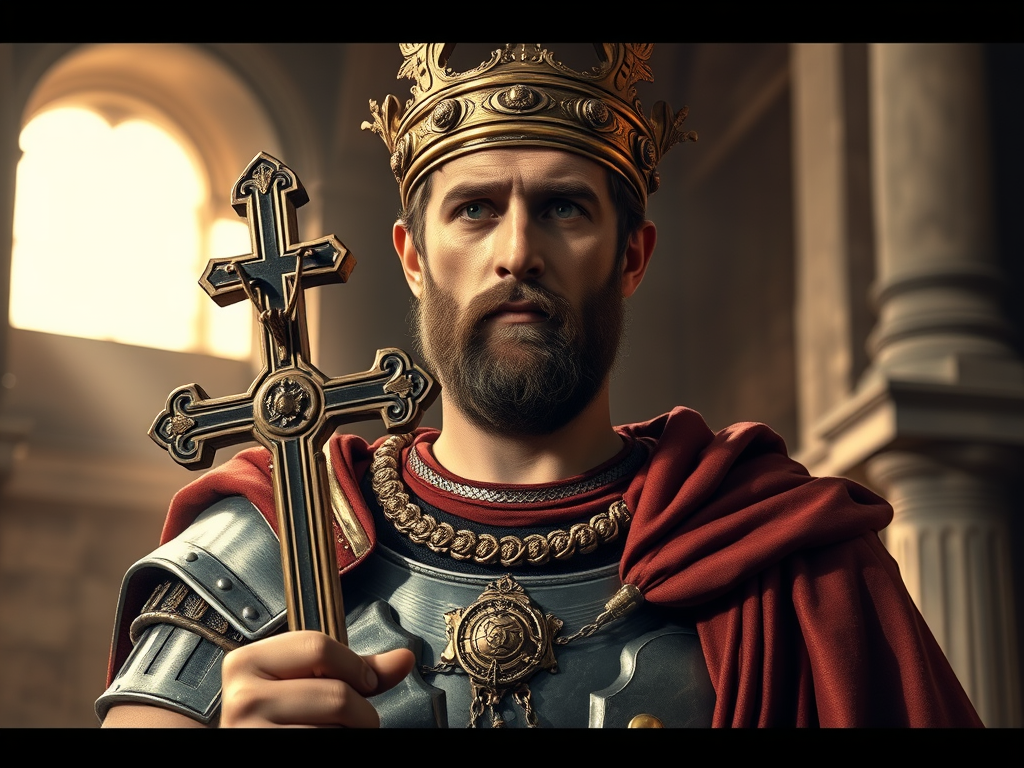 Two rivals, Constantine and Maxentius, met in an earth-shaking confrontation at the Milvian Bridge, north of Rome, over the Tiber River. Maxentius held Rome in his iron grip. As Constantine descended from the north, this brilliant general marched his smaller, battle-hardened army toward Rome. The day before the final battle, Constantine was filled with a familiar anxiety. At midday, his gaze drifted upward, away from the turmoil of his camp. There, he saw a cross of light above the sun itself, with the Greek words “Ἐν Τούτῳ Νίκα” (“In this sign, conquer”) emblazoned upon it. Later that night, another vision came to him in a dream. Christ appeared, bearing the same cross, and commanded Constantine to make this symbol his standard in battle. The symbol was the Chi-Rho, an elegant monogram formed from the first two Greek letters of “Christ.” The next day, he ordered his soldiers to paint the sacred monogram on their shields. Within hours, the two armies clashed fiercely on the plain north of Rome. Constantine’s cavalry, emblazoned with the Chi-Rho, charged with a ferocity that Maxentius’s larger army could not match. It was a decisive victory. After his victory at the Milvian Bridge, what Constantine did next—or did not do—would begin to echo through the ages. The rules of the triumph required Constantine to enter the Roman capital and offer the sacrifice of an animal to Jupiter; Constantine refused. This was because he attributed his win to the Christian God.